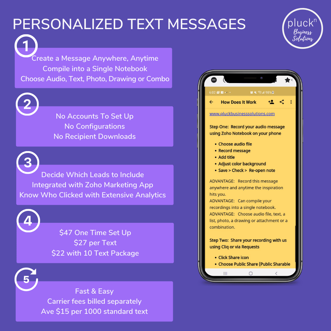 Pocket Coaching is the ability to send targeted text messages to your marketing list on a regular basis and feature the content you decide is most valuable to share with your loyal customers.